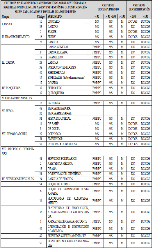 DE LAS NAVES DEL GRUPO I PASAJE, SUBGRUPO LANCHA.