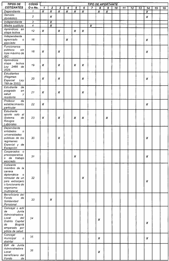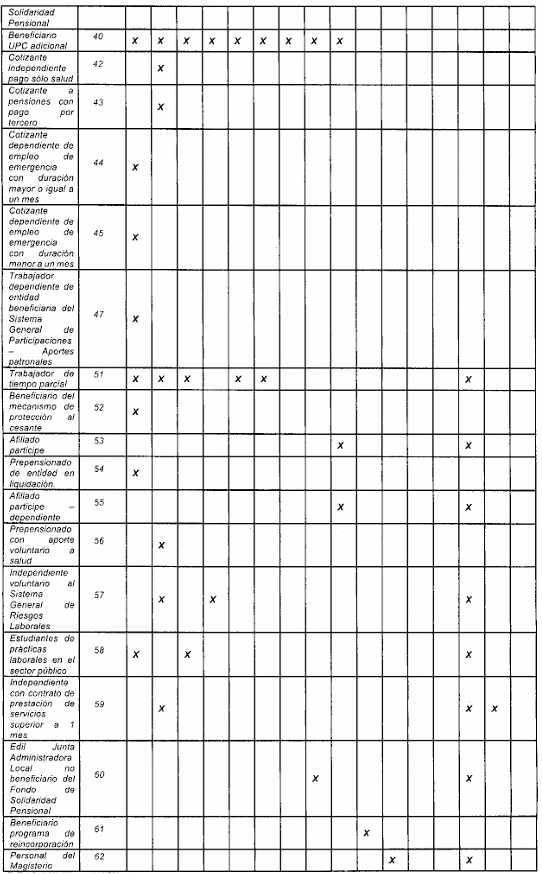 | Cotizante independiente pago solo salud | 42 | X | ||||