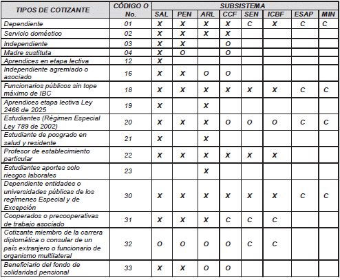 Cotizante: Persona natural nacional o extranjera por la cual el aportante realiza sus aportes al Sistema de Seguridad Social Integral y Parafiscales a través de la Planilla Integrada de Liquidación de Aportes (PILA).