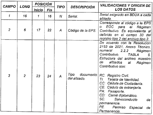 | 5 | 16 | 22 | 37 | A | Número de identificación (NIT) MEN. | Tomado en el campo 3 del registro tipo 11 del Anexo Técnico 2. |