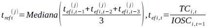 Para cada rango de IOSC j, se calcula la tarifa de referencia , equivalente a la mediana de las tarifas efectivas